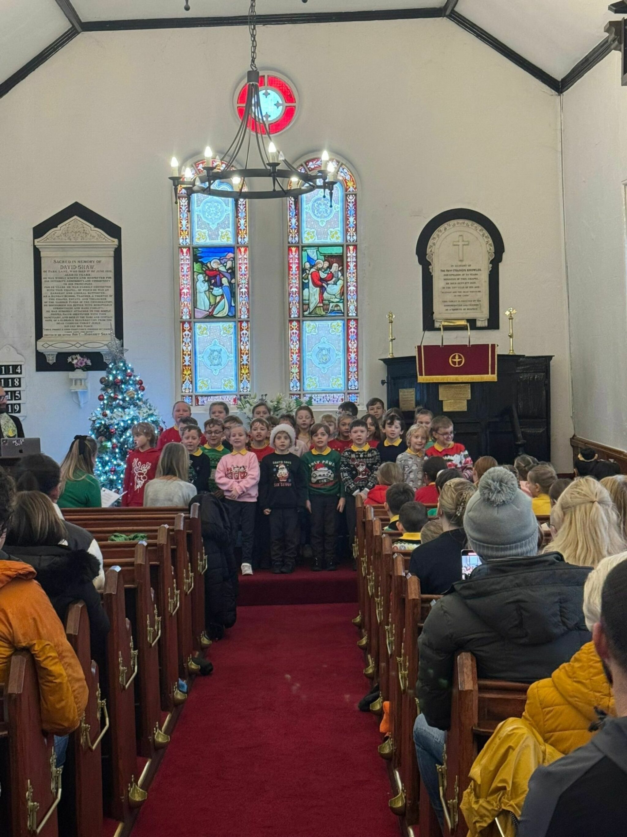 Despite the truly awful weather (something even a minister can’t fix!), parents were warmly invited into the school room for refreshments and warmth before the concert, though a few cheerfully braved the rain outside. The visit also gave the children the chance to practise taking their seats, moving to the stage, and returning again in an orderly fashion, something they perfected wonderfully.